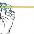- Die potlood moet voortdurend in kontak wees met die vel, tussen die duimnael en die gewrig. As dit aan die gewrig raak, vou jy nie die middelvinger vinnig genoeg nie, as dit aan die spyker raak, hou jy die potlood verkeerd vas (dit moet in die middel van die duim begin, met die onderkant van die potlood onderaan die spyker. Dit sal `n mate van hoogte verloor wanneer dit draai).